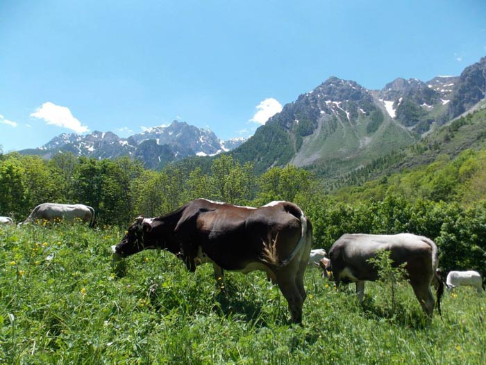In our farm we raise mainly cattle, goats and sheep who freely graze on the pastures around Chiappera. We also have many other farm animals, each with his own name and personality. In fact, our rooms are named after three of our cows: Asia, Luna and Maya. In our orchard we grow potatoes, lettuce, carrots, zucchini, leeks, and other vegetables. Whatever cannot be grown in high mountain (for instance tomatoes, cucumbers, eggplant, peppers and pumpkin) is provided by nearby Roccabruna, where you can also find chestnuts and some fruit trees. You can taste our own produce at Maria's Bar & Restaurant